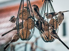 KohlmeiseBlaumeiseSchwanzmeisenSchwanzmeisenAmselAmsel (mit Spatz)AmselKleiberKleiberBuntspecht Wilhelma